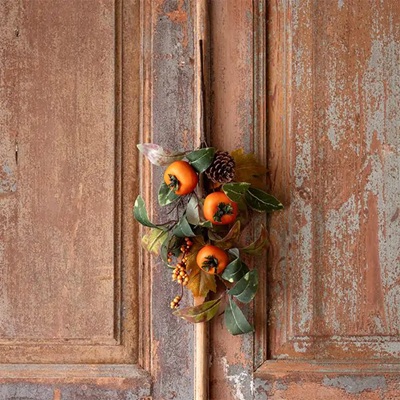 - Floral Door Charm: If you want something more understated, you can instead hang up a small floral that hangs from your door like a charm. Something sweet like this autumn foliage persimmon pick set can add just a touch of autumn flair.