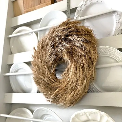 - Wheat Wreath: You can also decorate your home with a wheat wreath, which combines that beautiful dried wheat gold with stunning textures that suit the whole season.