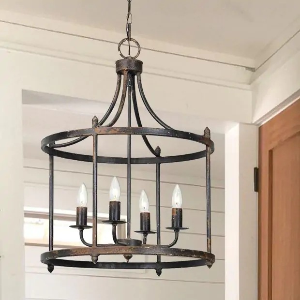 Finally, would you like your living room to be lit up like the castles of old? Our rustic quatrefoil pendant chandelier combines the best of both lighting styles. It has four fixtures and a rustic distressed iron frame. This impressive chandelier adds a stunning glow to any room.