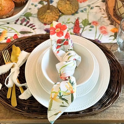 Add cloth napkins to your Easter table, and you instantly elevate the experience. A wildflower napkin set, for example, brings color to each place setting, but it stays soft and reusable. Fabric napkins also balance your more decorative dishes.