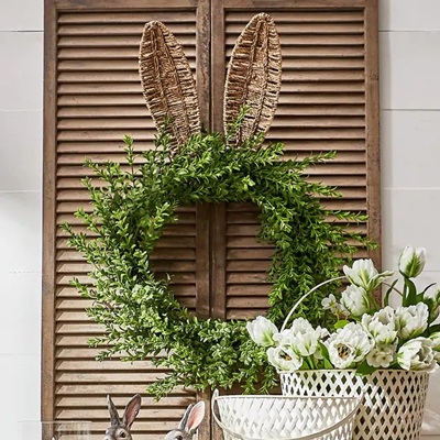 Our Beautiful Boxwood Decorative Wreath is a generously sized wreath that can be used for any occasion. To make it work nicely for Easter, try placing bunny ears on it or a pastel touch. This 24” diameter decorative wreath adds an instant touch of nature with its verdant display. What a delightful way to greet your visitors!