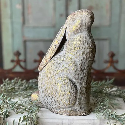 Are you looking for the perfect distressed bunny to add to your front porch? Our Darling Distressed Bunny Figure suits the bill perfectly! This metal rabbit statue stands 12” high and will capture the eye of any guests. His gilded accents and distressed finish give him a lovely textured appearance.