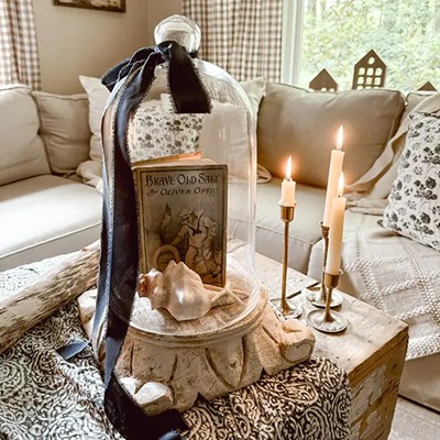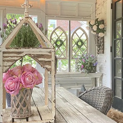 Your shabby chic decor should blend rustic and vintage charm. Choose muted creams, soft pastels, and whites, along with worn-in furniture options. One of your first decor steps should be a rustic lantern such as our church lantern. Of course, the church lantern doesn’t provide light. Instead, it can be an old-world centerpiece.