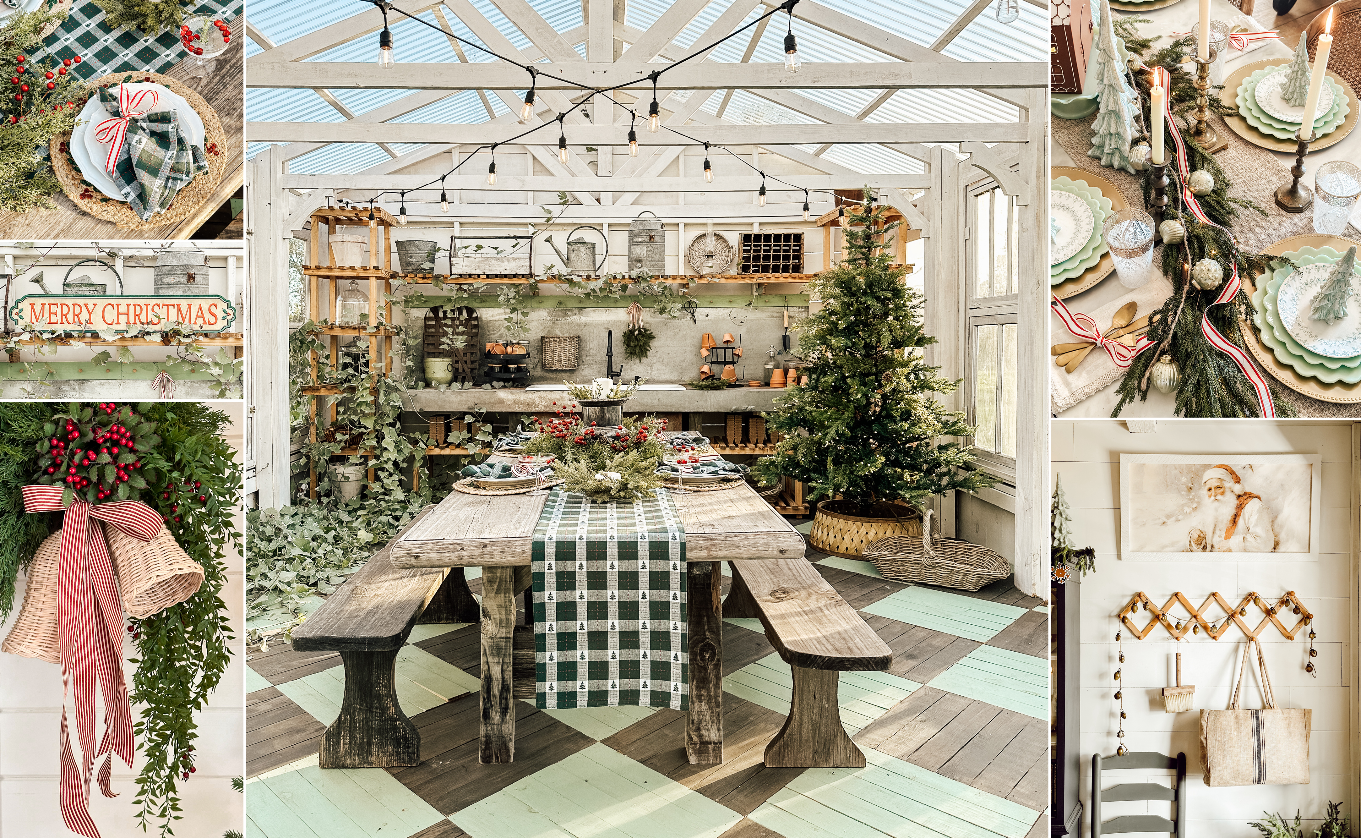 Christmas Green Plaid and Trees TableclothAs low as $42.00