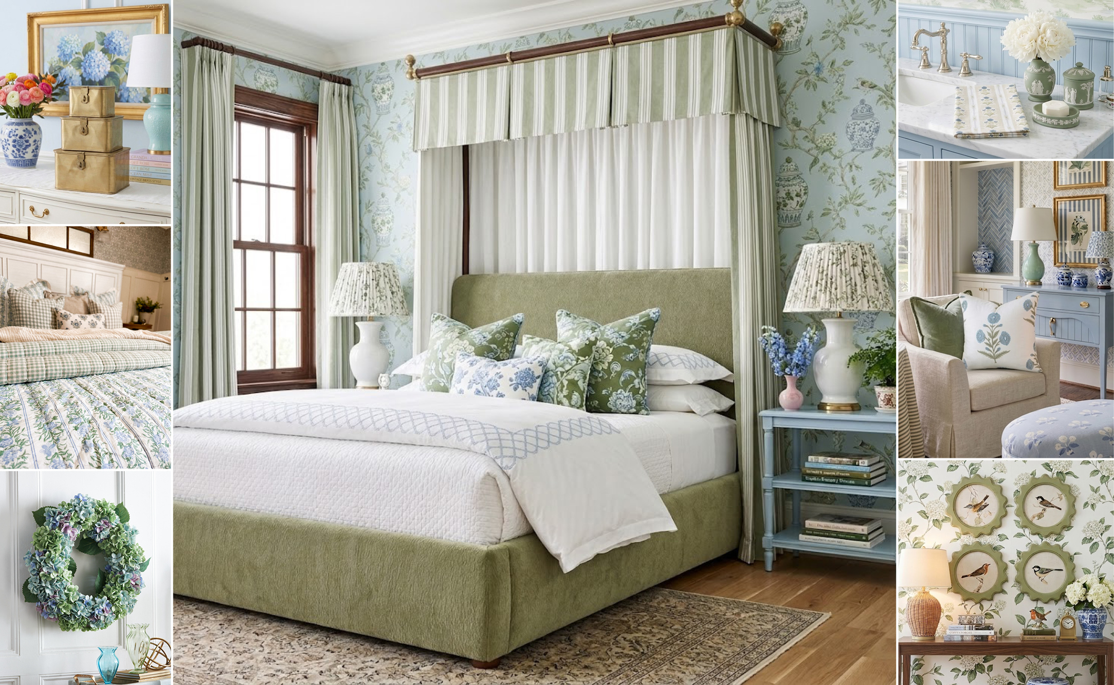 Elevate your aesthetic and add a cozy, tailored focal point to your bedroom with our Modern Olive Green Fabric Upholstered Full Bed. Set the tone for your seasonal look and liven up any room with our Multicolored Spring Hydrangea Wreath. Store your little treasures or keepsake notes in our Decorative Metal Keepsake Boxes, stack them for display, or use them to organize your home. Featuring a mix of calming tones and a patchwork design, our Cottage Classics Bed Quilt will create a timeless look for your guest bedroom or master suite. Our Blue Zinnia Floral Block Print Pillow Cover will refresh your space by dressing your existing throw pillow, and our Scalloped Round Bird Print Set brings a gentle, collected feel to any room. For more beautiful decorating ideas, DIY, and design inspiration, make sure to check out our friend @itty_bitty_farmhouse on Instagram.